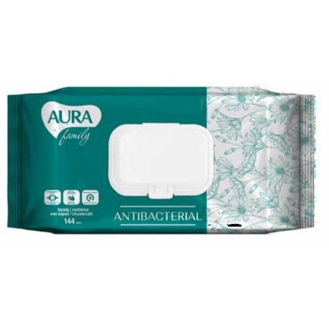 AURA Влажн. салфетки 144шт Антибактериальные, крышка 4504