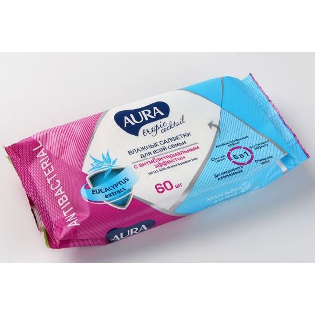 AURA Влажн. салфетки 60шт Тропический коктейль Антибакт. /3974/