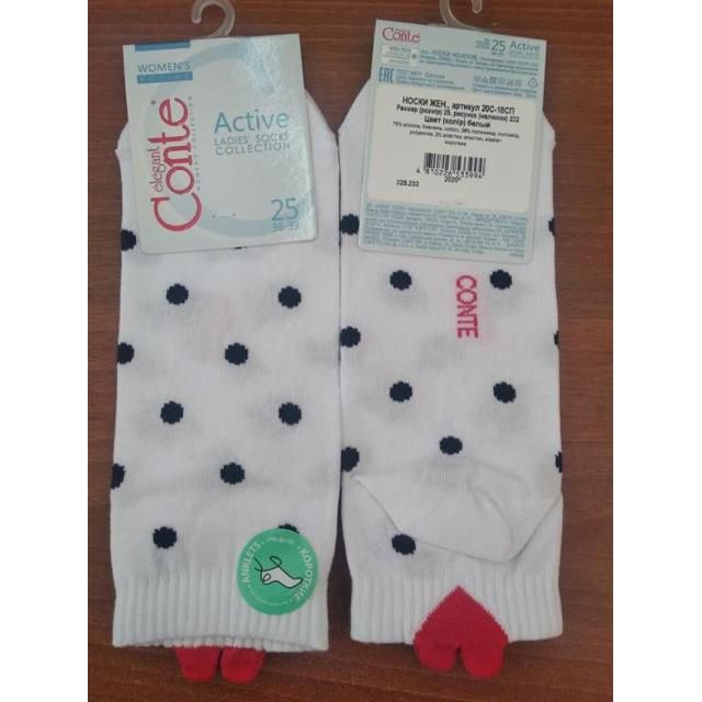CONTE Носки жен. ACTIVE (20С-18СП) 222 (укор/"Горошек) р.23 Белый