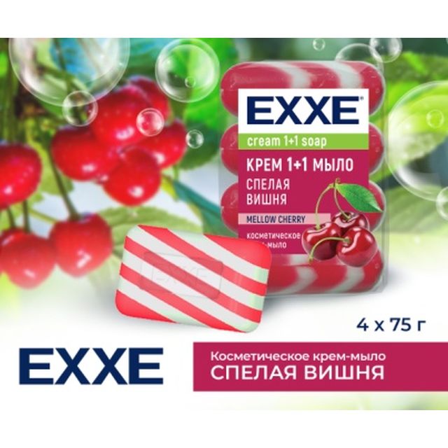 EXXE  Мыло туалет. 4шт* 75г СПЕЛАЯ ВИШНЯ красное полосатое /1423/