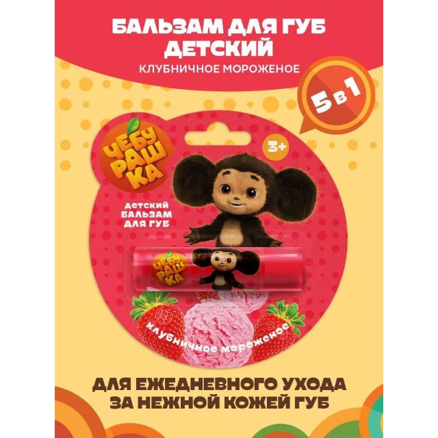 ГАЛАНТ "ЧЕБУРАШКА" Бальзам для губ Клубничное мороженое 4,2 г