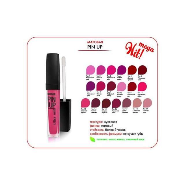 LUXVISAGE Блеск для губ PIN UP т.18 ultramatt розово-бежевый