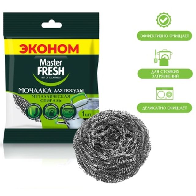 MASTER FRESH Губка-Мочалка для посуды металлическая (1шт) СПИРАЛЬ 12г /7198/