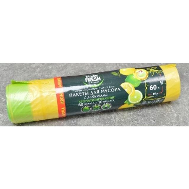 MASTER FRESH Мешки/Пакеты для мусора   60л 10шт 14мкм LEMON арома,зав.желт./0129