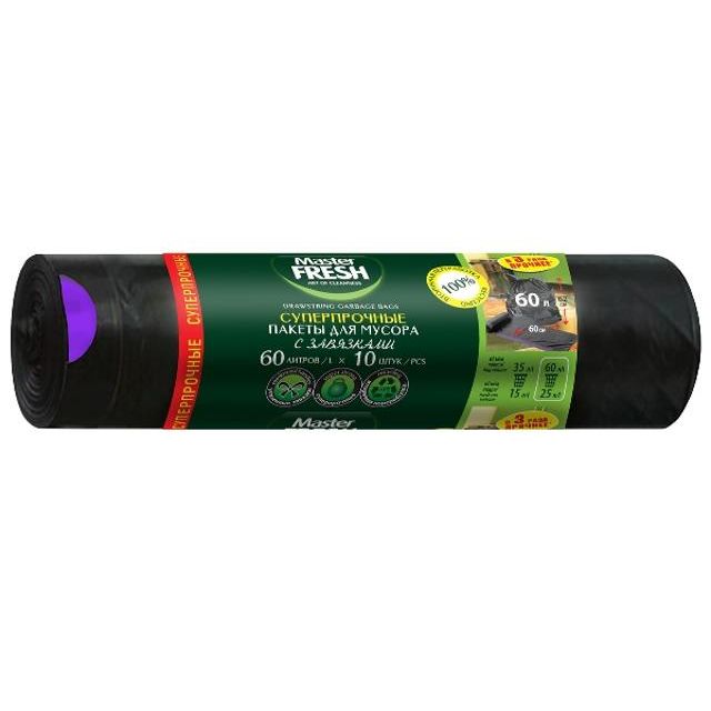 MASTER FRESH Мешки/Пакеты для мусора 60л 10шт 30мкм СуперПр.,зав.черные/0099/