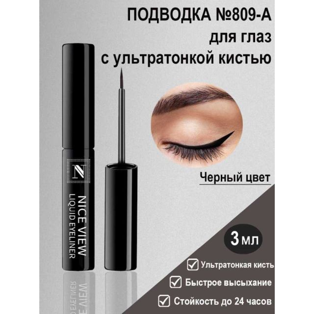 NICE Подводка-Жидкая 809 с тон.кисточкой Черная