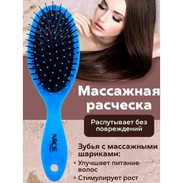 NICE Расческа 134 Расч массажн с пласт. зуб.цветная (L-22, H-7см)