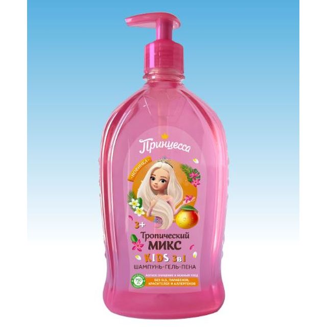 ПРИНЦЕССА Шампунь для волос 750мл дозатор 3в1 Тропический микс /6969/