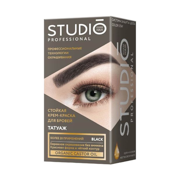 STUDIO Краска для бровей и ресниц Эффект татуажа Экстра-черная 20мл /649/